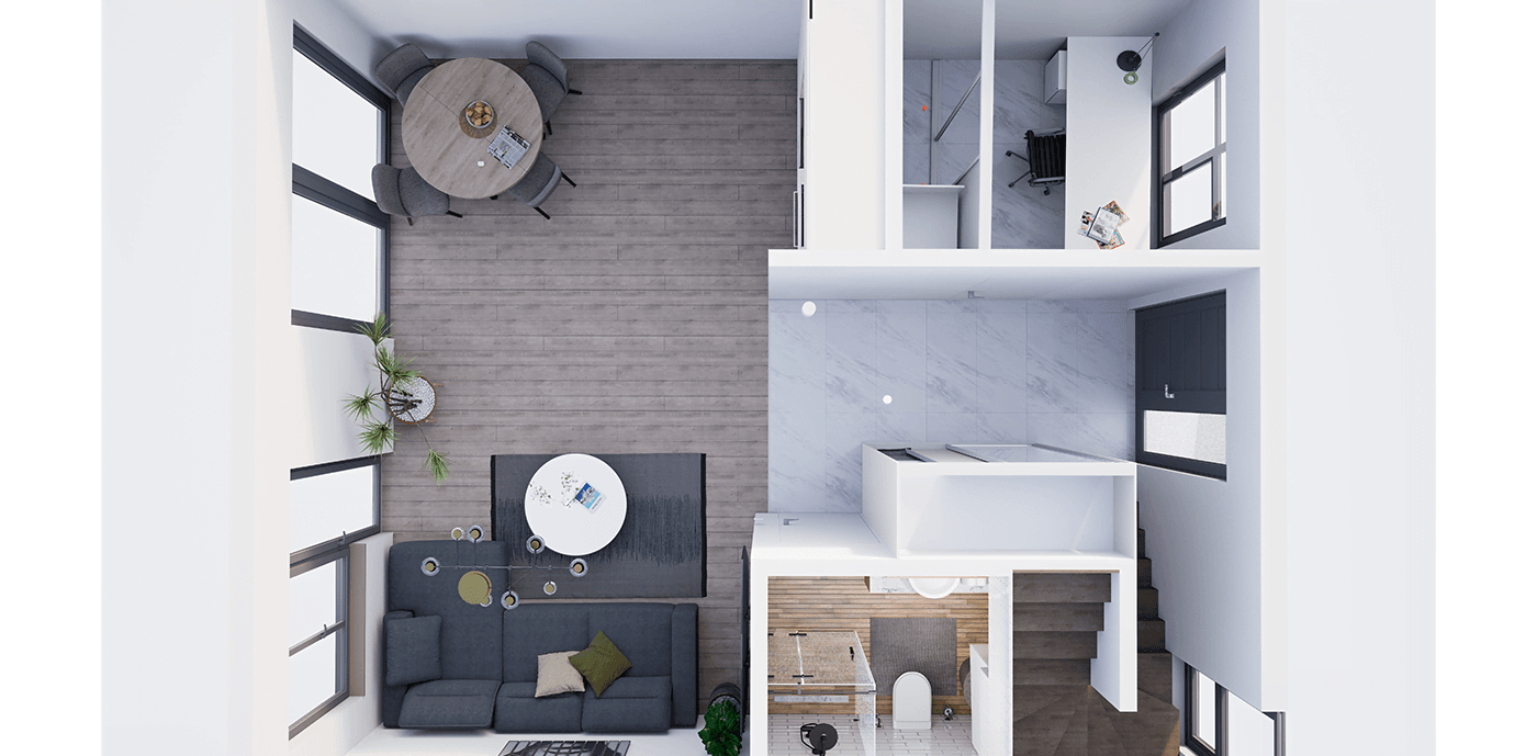 See below how the layout of the house changes from the basic version to the UPLEVEL 2in1 version by installing additional internal doors, each floor of the house can be used for the needs of a separate family